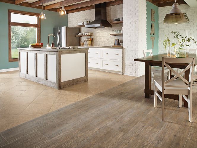 Engineered Stone stands up to the toughest rooms in any homeComplementary wood designs blend together to create unique spacesElevate the possibilities with accent walls, backsplashes and moreNew design kits take the guesswork out of creating a custom floorWood and stone designs can be installed without a transition pieceUse Quite Comfort Underlayment to create a floating Alterna floorAdd the finishing touch with Alterna matching trim and moulding.
