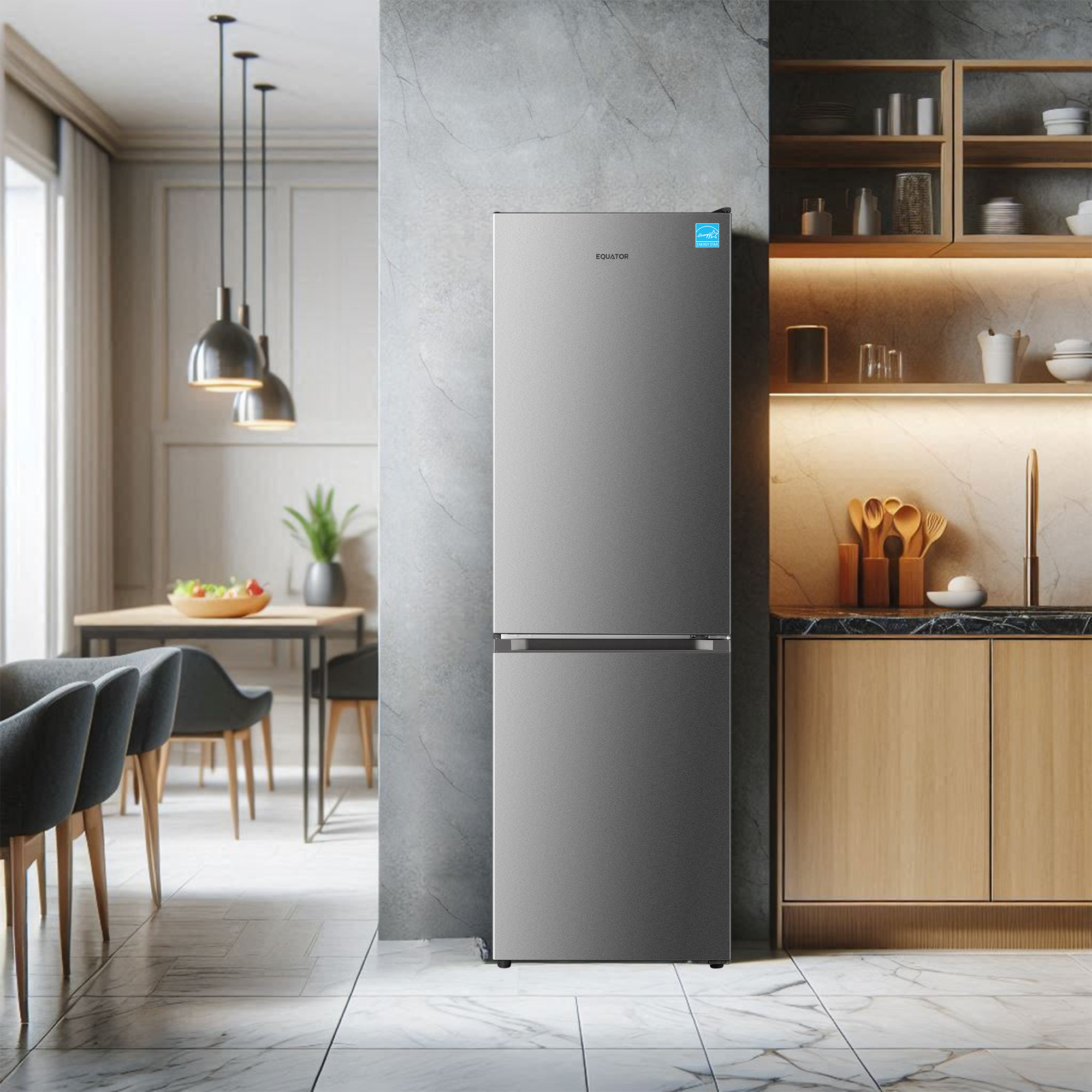 The Equator RFI 1200 S Bottom Mount Refrigerator-Freezer blends timeless retro-inspired elegance with advanced cooling technology. Featuring a fingerprint-resistant stainless steel finish, recessed handle, and bright LED lighting, it’s as stylish as it is functional.