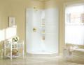 72043120 Intrigue , Series 7204, 39" x 74" Neo-angle Shower - Right End Tile WallMade with solid Vikrell(TM) material - no layers to chip, crack or peel - color molded throughoutModular design allows it to be moved around corners and through doorways with easeDurable high-gloss finish provides a smooth, shiny surfaceTongue-and-groove interlocking joints form a seamless appearance and simplify installationFeatures three convenient shelves in corner columnAvailable in a variety of colors