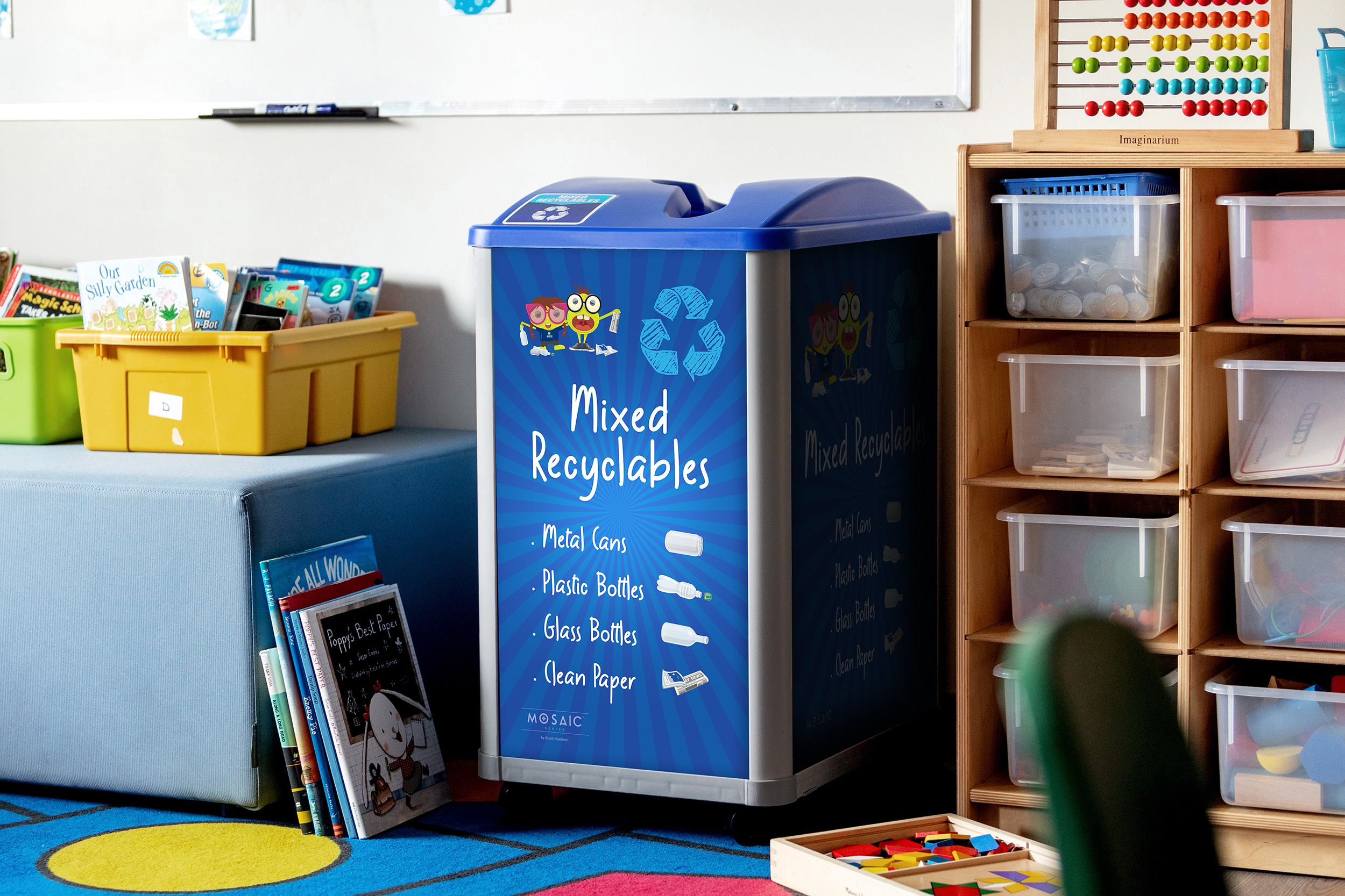 Maximize your messaging with our new elevated back sign frame. Placed higher on your Mosaic™ containers, it enhances visibility to help users sort correctly and reduce stream contamination.
