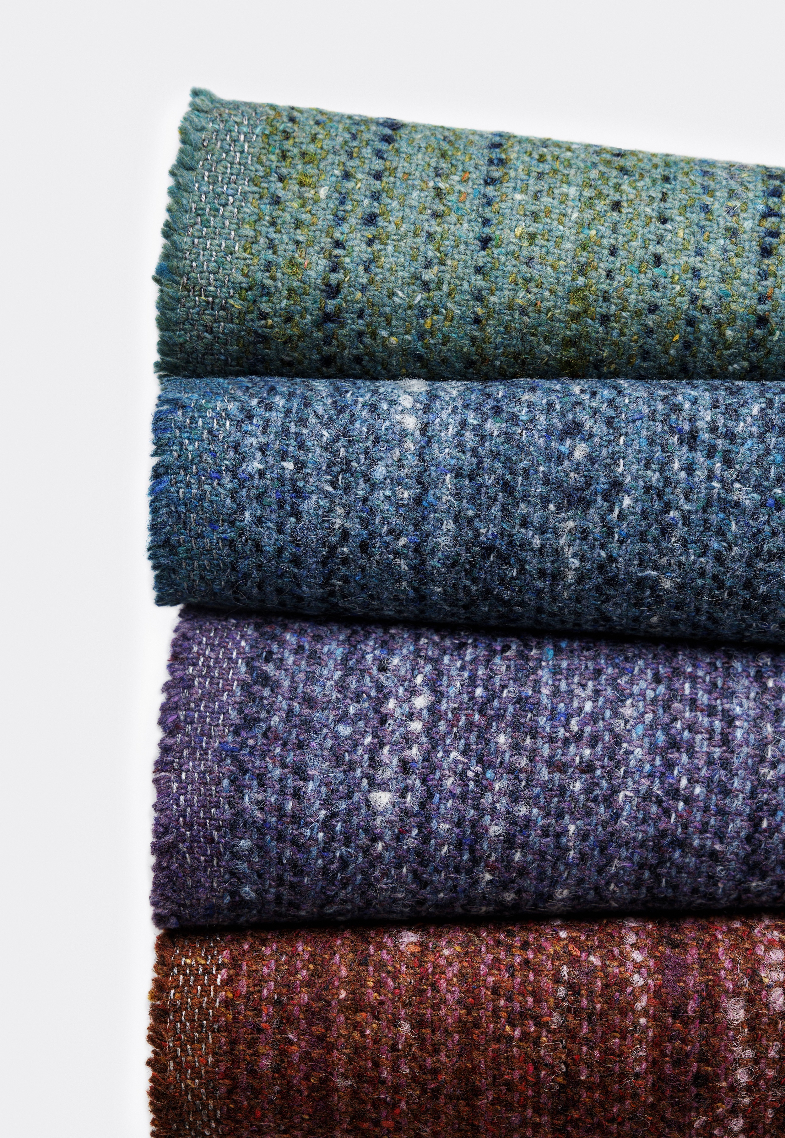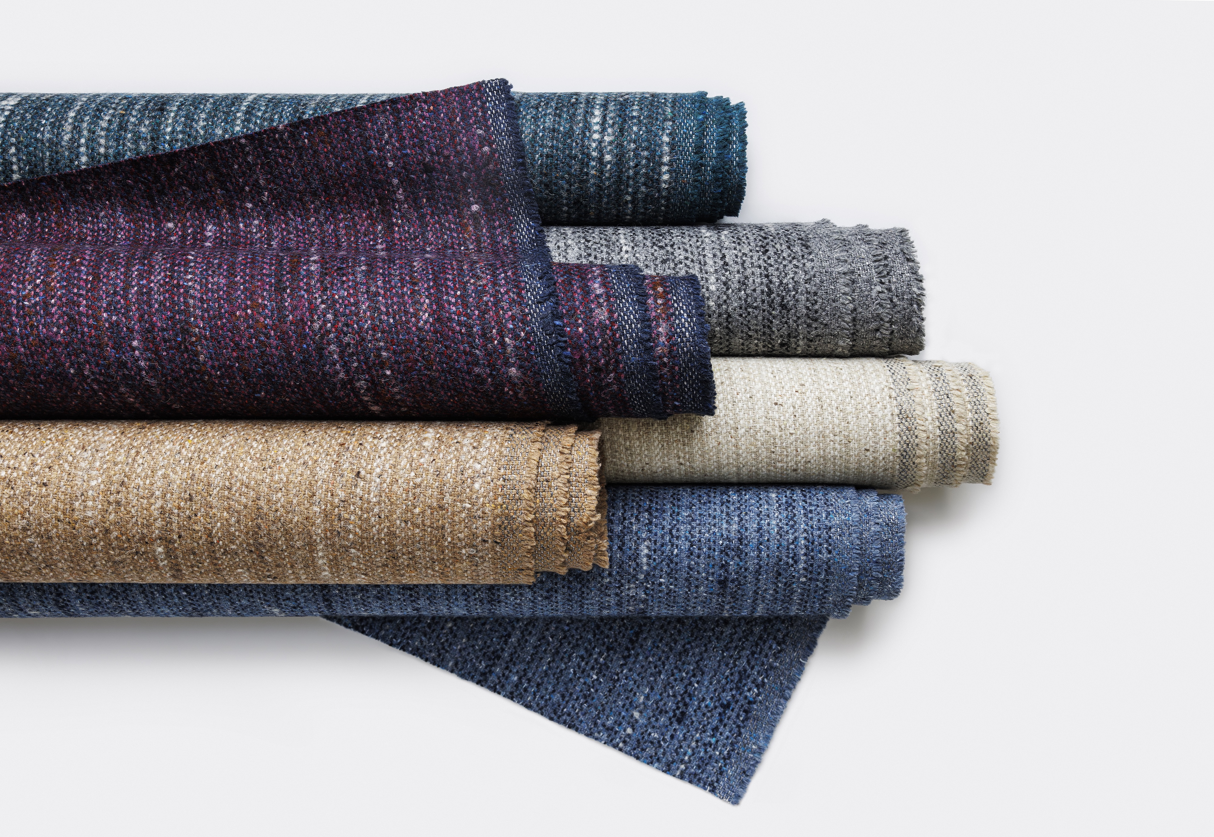 Subtle Stria: Another quality created on Luum’s recycled garment waste platform using pre-and-postconsumer recycled materials, each colorway of Subtle Stria begins its second life when discarded garments and postindustrial textile waste are shredded back into fiber according to content. Multiple colors of the resulting fiber are mixed into a precise formula and spun together to create complex melange yarns. Dimensional multicolor slub yarns comingle with heathered yarns. The result is a soft textile suitable for contract and hospitality applications. Subtle Stria’s 16 colorways relate to the other upholstery textiles on the garment waste platform to create a sustainable and holistic, go-to toolbox for color, texture and pattern options.