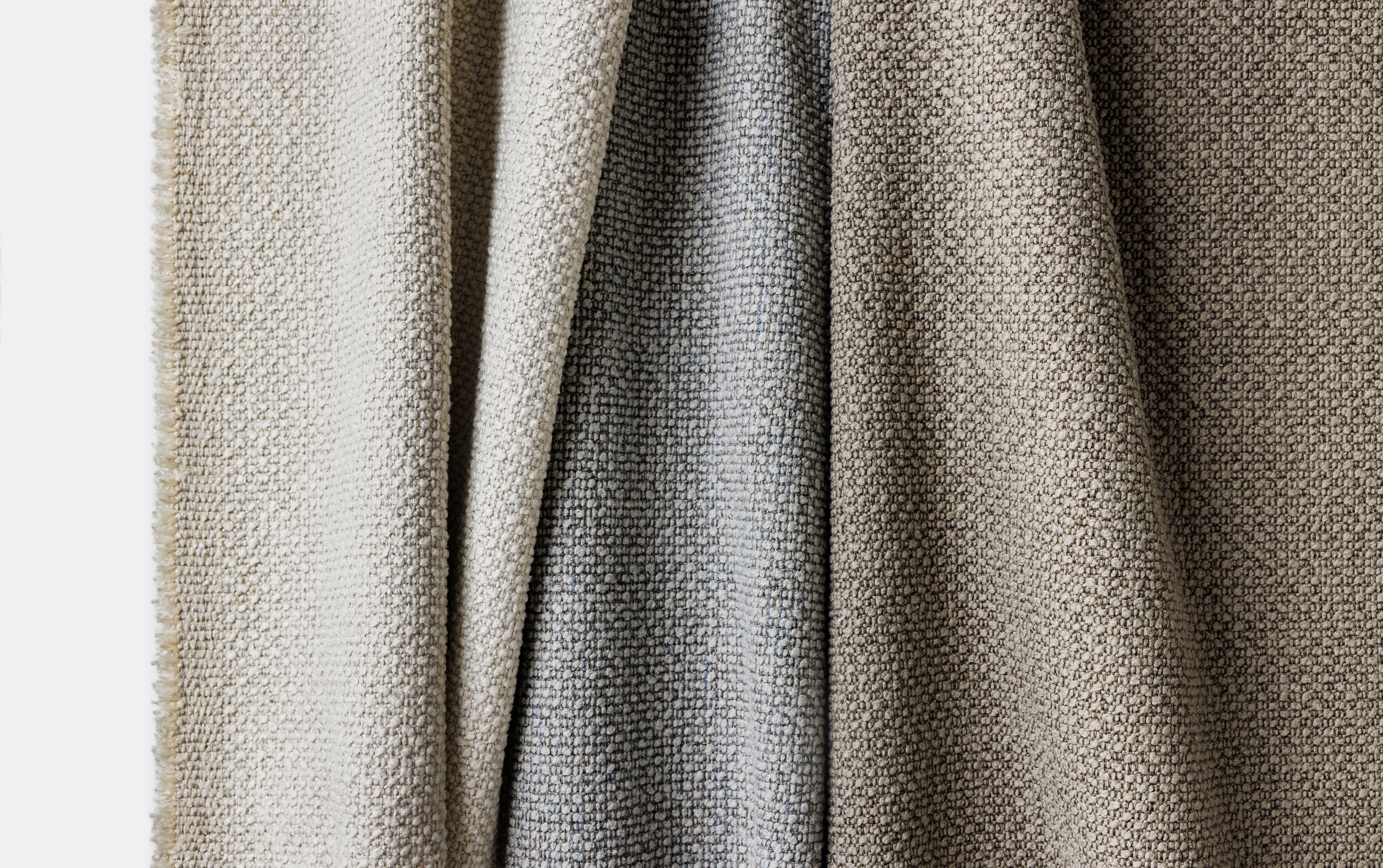 Surface Level: Surface Level is a nubby, textural upholstery fabric that comfortably lives in a contract, hospitality or residential setting. The enhanced scale of the weave structure allows robust rows of polyester boucle to come to the surface, where they are combined with the heathered olefin in warp and weft to create visual interest through texture and color. Woolen in its look and feel, the palette offers nuanced shades