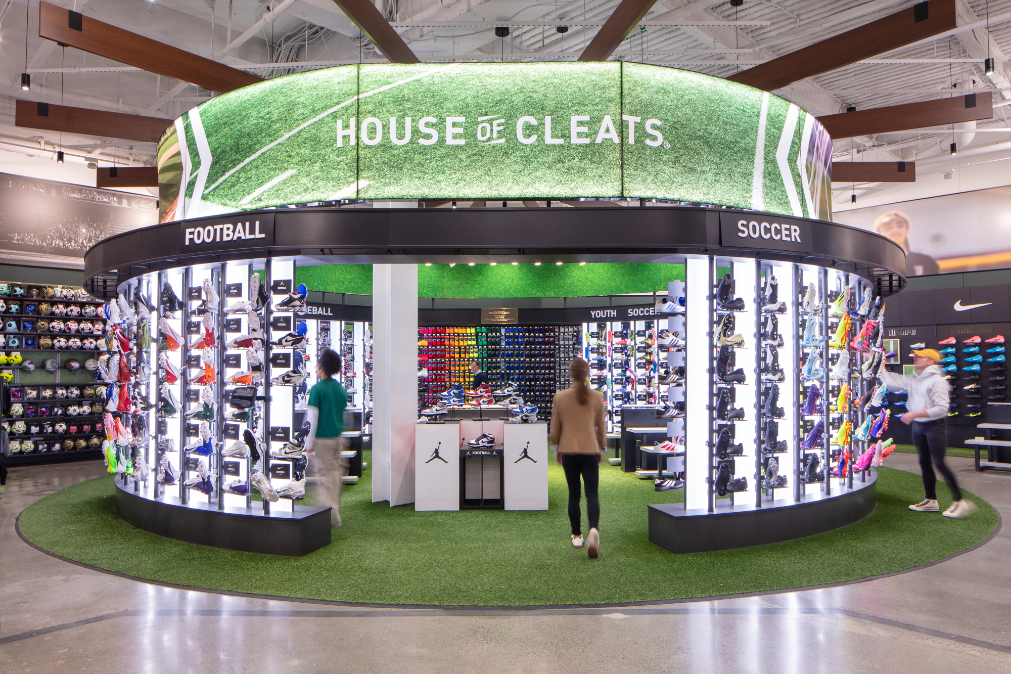 At the heart of Dick’s House of Sport is a focus on tangible experiences. Beyond the incredible assortment of products, it is a place to become immersed in the passion of sports. Upon arrival, visitors are greeted by the ever-changing Fashion Show zone, featuring highly localized stories ranging from the Boston Marathon to the Celtics playoff run to charity partnerships. This visual dynamic moment sets a tone for the celebration of sports of every kind and at every level of participation – truly embracing the athlete in all of us. Nearby, the Co-lab zone showcases unique partnerships and exclusive product assortments. And that’s just in the first fifty feet.