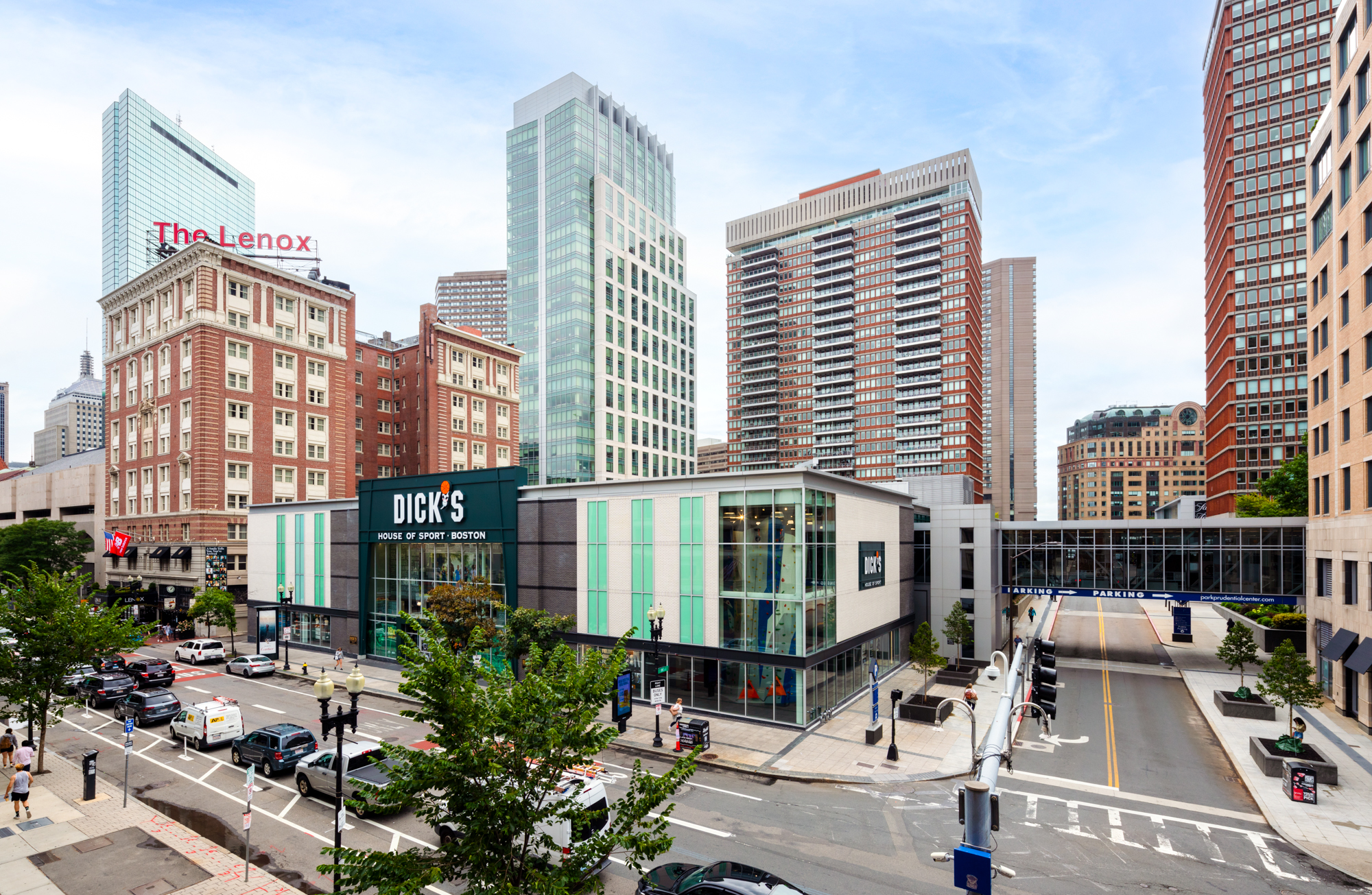 Standing proud at 760 Boylston St, between the iconic Prudential Center and the Boston Marathon finish line, Dick’s House of Sport Boston is multi-layered in its attributes. First and foremost, this is the first ever urban store location for the nearly 80-year-old Dick’s Sporting Goods brand. Second, the building itself is a renovated and reinvented former 1960s-era Lord & Taylor Boston Flagship, with remarkable visibility in the cityscape of Boston’s Back Bay. By embracing much of the existing base building core infrastructure, thoughtfully reusing wherever possible, and prioritizing adaptive design over a wholesale new build, the building has been entirely reborn as a retail mecca for the next 60 years.