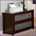 Overall Dimensions: 42?W x 19?D x 27 1/4?H 5mm Thick Frosted Glass Insert Solid Birch and Birch Veneer Construction Double Track Sliding Drawers