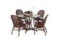 Textures and elements come together to form an exotic dining statement in Bassett's South Seas style. Island inspired, the South Seas dining table is held aloft by a pedestal of curvaceous cast metal legs punctuated with wicker wrappings. Matching chairs have luxurious leather upholstered seats and woven wicker seat backs.Height: 36'' Width: 22'' Depth: 25''