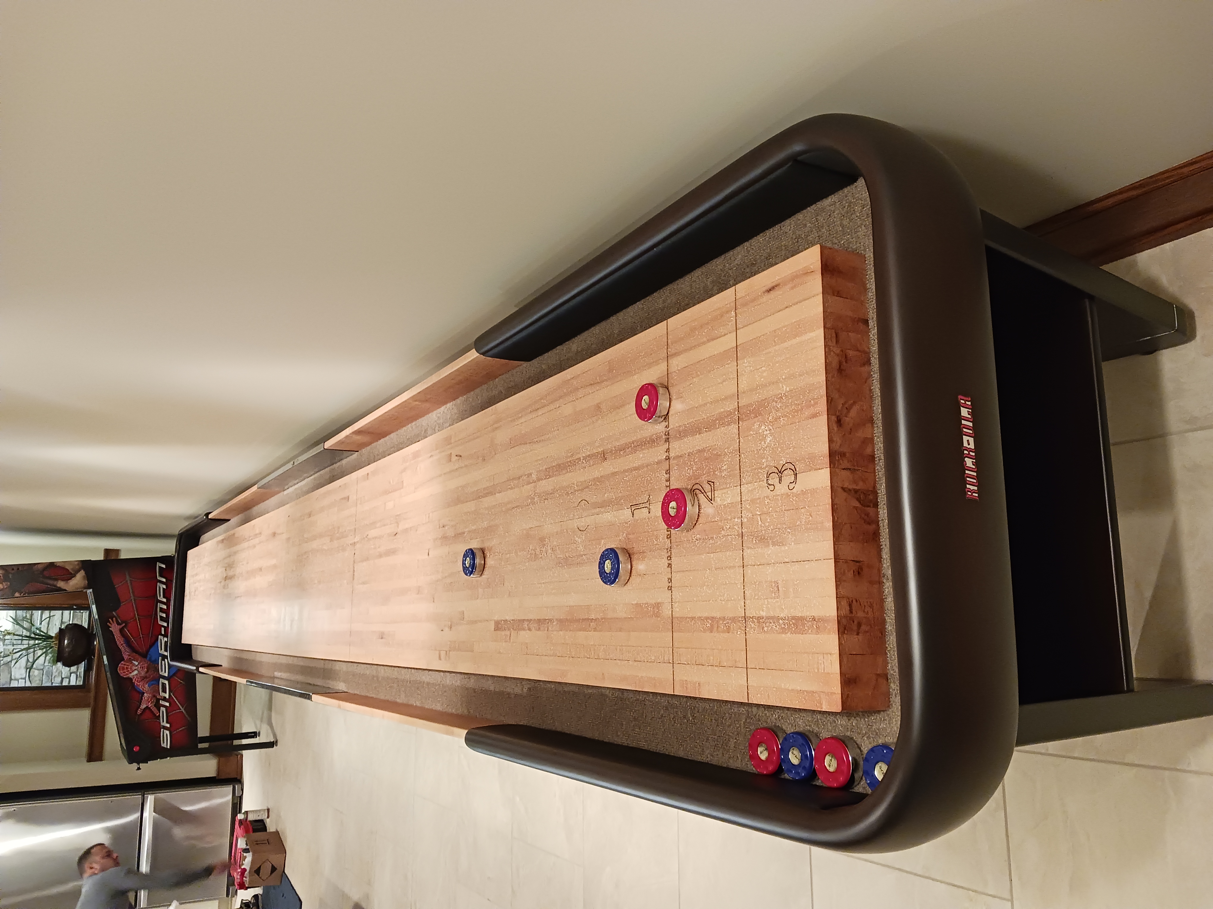 Your order will include 8 pucks and 1 can of shuffleboard wax powder. Optional upgrades include a traditional or electronic scoring unit in a matching finish. McClure Tables shuffleboards are built with the highest quality local materials and showcase old-world craftsmanship.